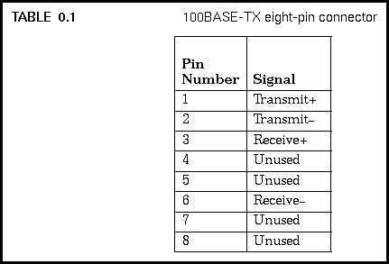 The pin numbers used in the eight-pin connector for 100BASE-TX were changed from the ones defined in the ANSI TP-PMD standard, in order to conform to the wiring scheme already in use in the 10BASE-T standard. The ANSI standard uses pins 7 and 8 for receive data, whereas 100BASE-TX uses the same pins as the 10BASE-T system: 3 and 6. That way, a 100BASE-TX board can replace a 10BASE-T board, and be plugged into the same Category 5 wiring system without making any wiring changes.