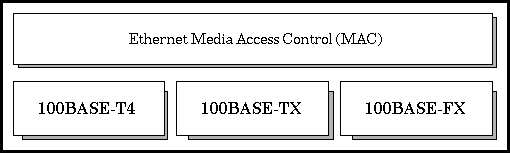 FIGURE 9.1 The three 100-Mbps Ethernet media varieties